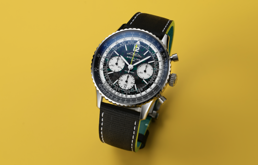 Cette collaboration couvre tout l’univers Aston Martin, des véhicules haute performance assemblés manuellement à Gaydon et St Athan à la poursuite de la gloire par son équipe de Formule 1. Ce nouveau partenariat débute avec la montre Navitimer B01 Chronograph 43 Aston Martin Aramco Formula One Team, qui restitue toute l’intensité de la course.