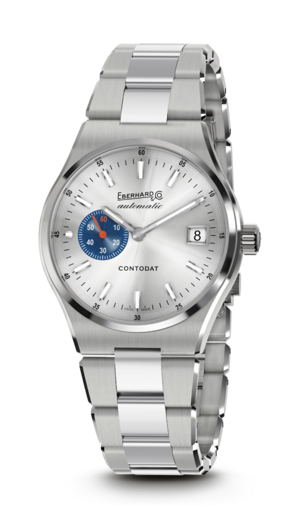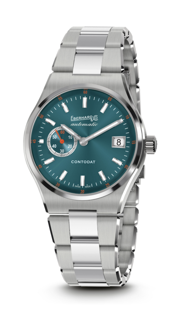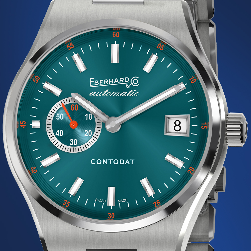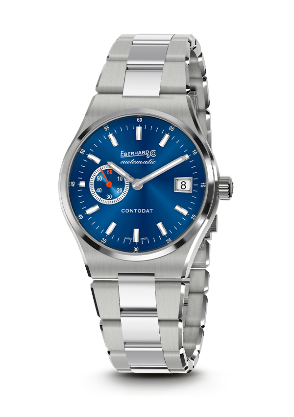 Inspiré d’une montre Eberhard & Co. des années 70, qui a défié l’arrivée du quartz, Contodatproposé en version Chronographe et Automatique – allie des caractéristiques sportives à un design intemporel et une touche de couleur. Animé par un mouvement mécanique automatique, il représente un symbole de dévouement à l’horlogerie traditionnelle. Doté d’un bracelet intégré avec une fermeture 2CLICK et d’un boîtier aux dimensions compactes, Contodat incarne l’esprit innovant de la Maison tout en restant fidèle à la tradition.