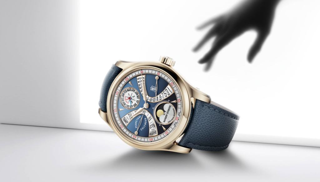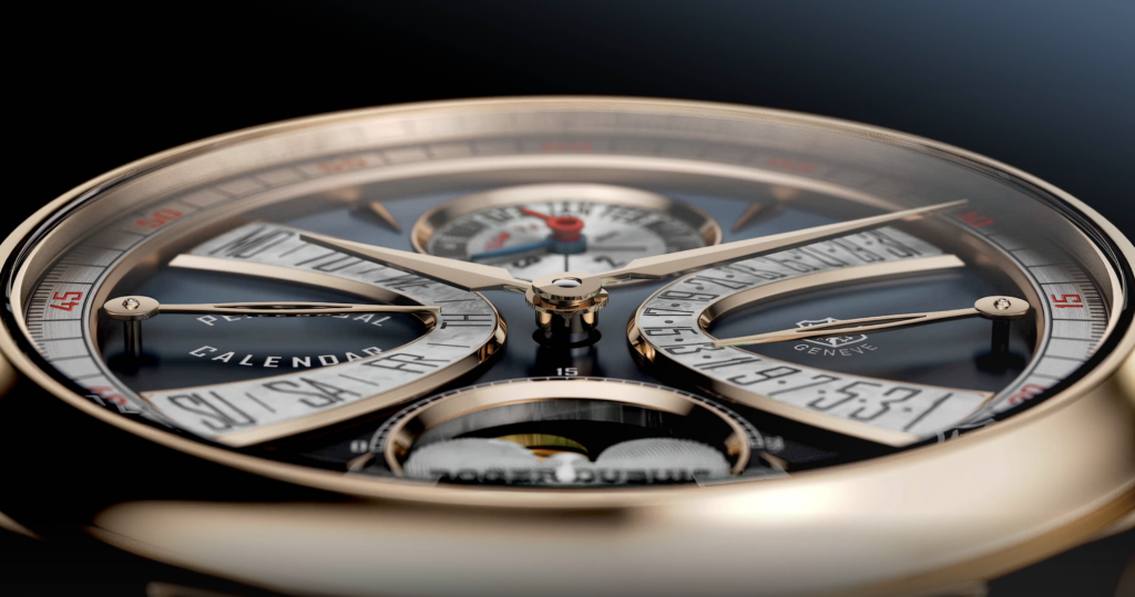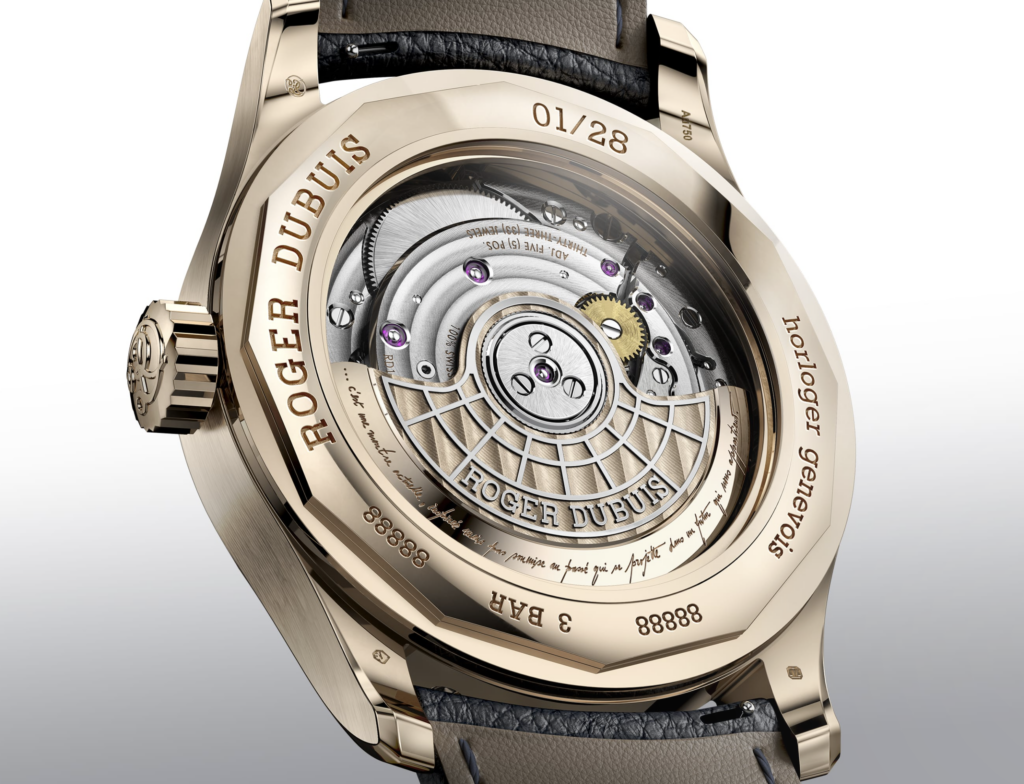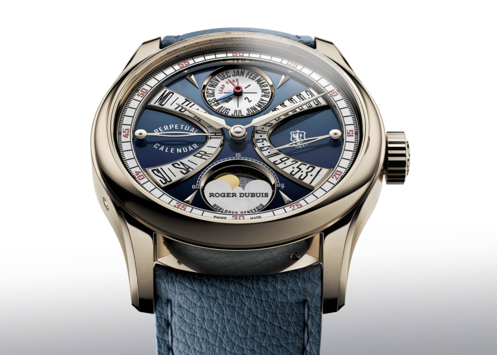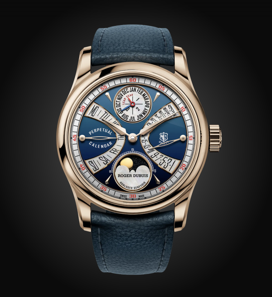 Au cœur de Hommage La Placide se trouve le RD1472, un calibre réinventé répondant aux plus hauts standards de l’excellence genevoise et unissant un Calendrier Perpétuel à un affichage Biretrograde, tout en honorant la passion de M. Roger Dubuis.